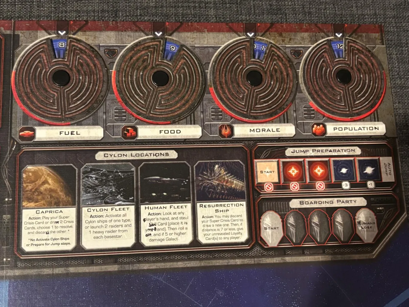 Kártyák újszerűek, tokenek is, doboza polckopott, egyik sarkánál kicsit erősebben, hiányzik 1 db űrhajó (ami szerintem 3D nyomtatással könnyen pótolható), a játéktáblán a szövegeknél az egyik előző tulaj szerintem megpróbálta nyelvesíteni talán ráragasztással, emiatt van ahol el van kopva az angol szöveg és vissza lett írva